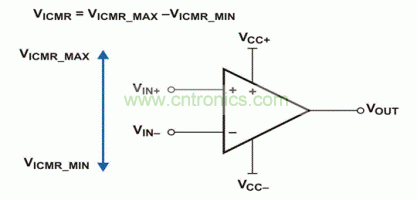 用于描述運算放大器輸入的另一個術語是“輸入共模范圍”(VICMR),或者更準確的說是“輸入共模電壓范圍”。它是許多產品說明書中經常用到的一個參數,同時也是廣大電路設計人員最為關心的一個參數。VICMR定義了運算放大器器件正確運行所需的共模輸入電壓“范圍”,并描述了輸入與每個電源軌的接近程度。