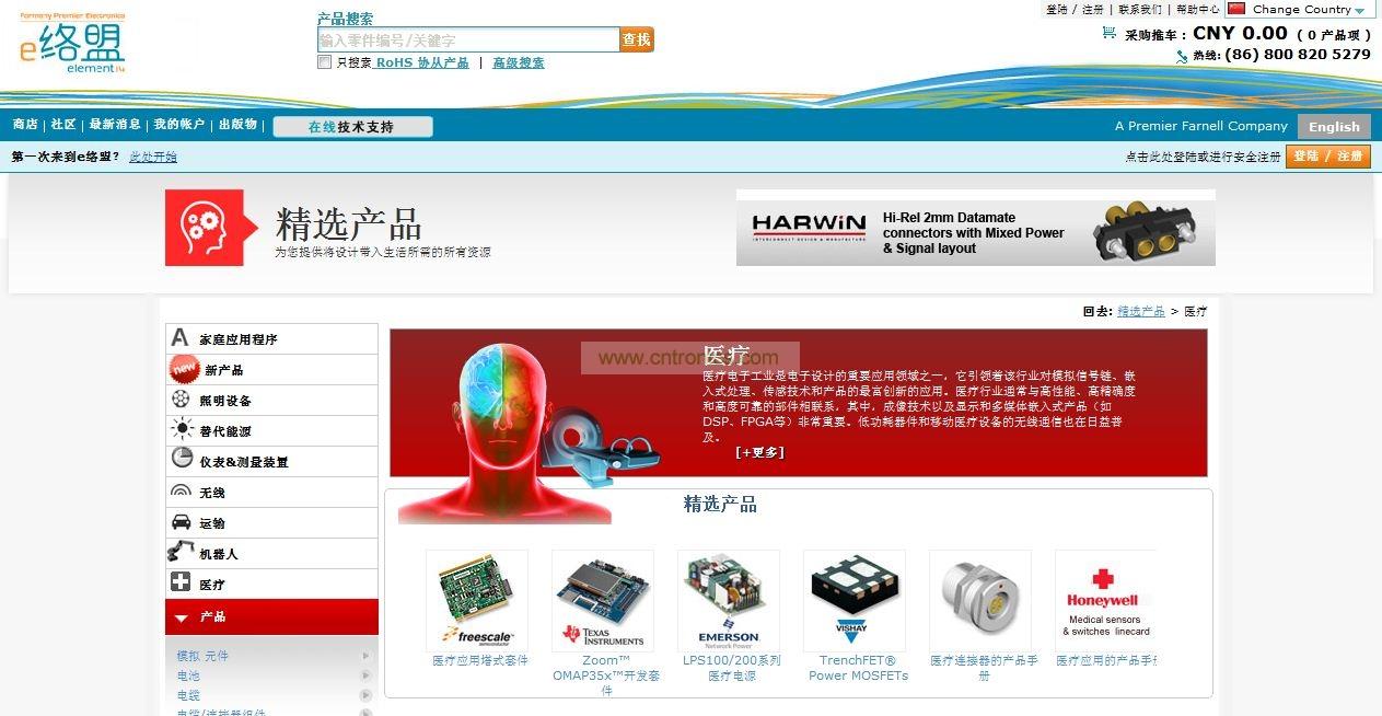 高性能、高精度和高可靠性部件對醫療行業至關重要。e絡盟的醫療子站率先采用創新模擬信號鏈、嵌入式處理和傳感技術以及世界領先供應商的產品,如Altera、Fischer、松下、德州儀器和XP電源。醫療成像在亞太區采用廣泛,尤其是顯示與嵌入式多媒體產品,如DSP和FPGA。低功耗設備和移動醫療設備的無線通信也日益普及。