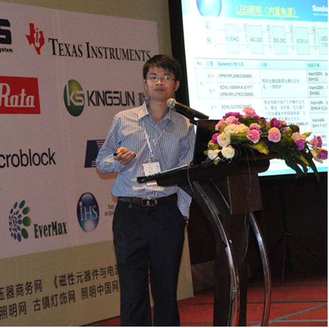 聚積科技照明產(chǎn)品總監(jiān)俞仲威帶來了《LED照明IC設(shè)計(jì)與電源模組應(yīng)用趨勢》。首先講述LED照明發(fā)展的市場,再分析LED燈管的發(fā)展,講解不同燈具對模組設(shè)計(jì)帶來的沖擊、LED應(yīng)用趨勢,最后拋出可控硅調(diào)光的議題,與現(xiàn)場聽眾進(jìn)行了探討。