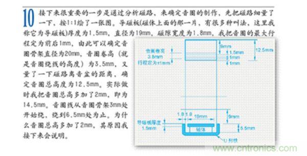 把繞好的音圈放入磁隙中,音圈正好在磁隙寬度的中間,音圈的卷高也在導磁板厚度的中心是由問題的,著就等于音圈已經打底了。這是音圈只能向上運動,不能向下運動,為什么做成這樣呢?我來解釋一下前面的那個問題。就是我把音圈總高從12.5mm加到了14.5mm的原因,通過計算,若我把音圈總高做成12.5mm,從音圈骨架1mm處向上繞線,那么當3.5mm的音圈卷高定位在導磁板厚度的中心。音圈離打底還有2mm,減去1mm的向下行程,還有1mm的余地。現在我的做法是把音圈里打底還有2mm的高度在音圈上用線事先標好,這么做事為了能把音圈卷高準確定位在導磁板的正中心。