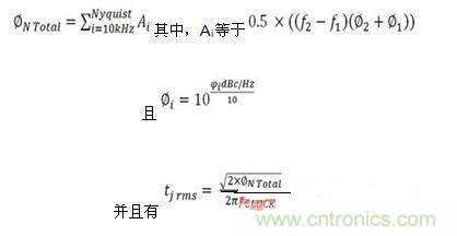 振蕩器),并設(shè)置內(nèi)部寄存器,以生成AD9643的低抖動(dòng)時(shí)鐘輸出。根據(jù)時(shí)鐘輸入和相位噪聲的抖動(dòng)計(jì)算公式: