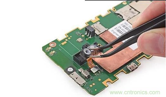 主板上搭載了為較低感測(cè)器陣列提供電氣接地與熱耗散的銅。iFixit表示,造成高熱量產(chǎn)生的罪魁禍?zhǔn)资莵?lái)自手機(jī)上的一連串紅外線LED。