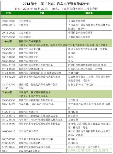 【導讀】我愛方案網 (www.52solution.com)、電子元件技術網 (m.aolaiaolisita.com) 攜手中國電子展、清華大學、上海市浦東新區科學技術協會、上海市汽車工程學會順應時勢,將在2014年10月30日共同主辦第十二屆(上海)汽車電子暨智能車論壇。