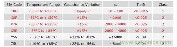陶瓷電容器基本可劃分為兩大類:穩定的2級電介質,包括X7R、X5R和X8R,以及超穩定的1級電介質,包括C0G/NP0。實際上還存在3級電介質,但是這種極少用到。電介質的類型決定了它們的性能特色,電路設計工程師據此可視應用的具體情形預測電路性能。