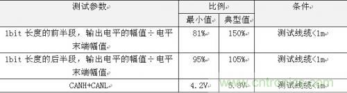 示波器測(cè)量1bit的差分電平顯性位的末端幅值,然后在測(cè)量前半段(50%)差分電平最大值,兩者相除,如果在81%~150%則通過(guò);