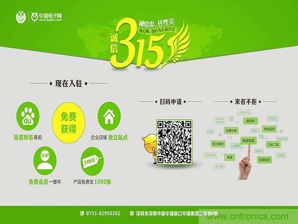 2016年兩會政府工作報(bào)告中強(qiáng)調(diào)大型制造業(yè)對物聯(lián)網(wǎng)越來越重視,相關(guān)的電子元器件、連接器的技術(shù)和產(chǎn)品需求將持續(xù)增長。華強(qiáng)電子網(wǎng)是全國電子元器件領(lǐng)域排名第一的垂直B2B網(wǎng)站。依賴政策紅利,響應(yīng)號召,積極行動(dòng)。在315國際消費(fèi)者權(quán)益日全面推出免費(fèi)贈(zèng)送一年會員的福利。為深耕于電子產(chǎn)業(yè)前線的電子人送上實(shí)實(shí)在在的315大禮!