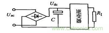 隨著各行各業控制技術的發和要求可操作性能的提高,許多場合的用電設備都不直接使用通用交流網提供的交流電作為電能來源,而是通過各種形式對其進行變換,從而得到各種所需的電能形式。它們的幅度、頻率、穩定度及變化方式因用電設備的不同而不同,如電動機變頻調速器、綠色照明電源、開關電源等等,它們接入電壓網后,也有一個交流電源的利用率問題。上述產品有一個共同特點就是:利用橋式整流器和大容量的濾波電容實現AC/DC轉換,由工頻市電獲得直流電壓;雖然交流輸入電壓基本上未出現波形失真,但輸入電流卻不再保持正弦波形,而是呈不連續的峰值較高的脈沖。如圖1所示的橋式整流濾波電路。只有當輸入交流電源Uac的瞬時值高于電容C的電壓時,整流二極管才導通,Udc基本上維持不變,可見二極管的導通角明顯小于180°,輸入電流波形嚴重失真。