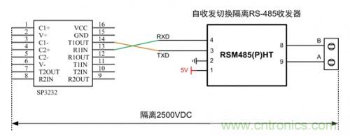 圖 4 簡易隔離RS232轉(zhuǎn)RS485方案一