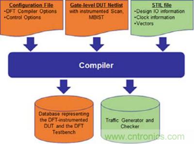 用于硬件加速仿真的 DFT App 改變了硬件加速器在開發階段的編譯流程和運行時間。這將為編譯流程和運行時間帶來重大變化。具有掃描和 MBIST 結構的門級設計被載入硬件加速仿真的編譯器。編譯器創建了用于讀取Stil文件中測試向量的測試結構,然后將這些向量應用到可綜合的待測器件 (DUT) 以及進行輸出比較。編譯器將用戶網表重新編譯并合成到一個能夠兼容硬件加速仿真的結構化描述中。編譯器創建了用于讀取Stil文件中測試向量的測試結構,然后將這些測試向量用到可綜合的待測設計上,再將網表重新編譯并合成到一個能夠兼容硬件加速仿真的結構化描述中。測試控制架構還包括比較輸出的機制。參見圖 1。