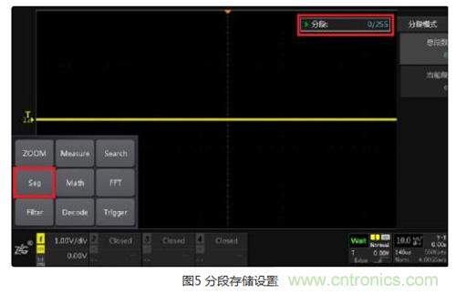 點擊【Seg】,通過調節時基檔位,在560Kpts存儲深度的狀態下,將分成255段進行存儲和采集,如下圖5: