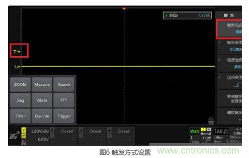 設置觸發方式為【普通】,將觸發電平調到合適的位置,等待小概率異常信號到來。