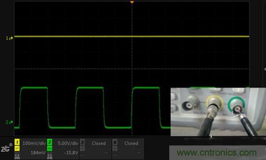 1. 通道1探頭地使用鱷魚夾接地,通道2關(guān)閉(證明通道1信號(hào)原狀,見圖2)