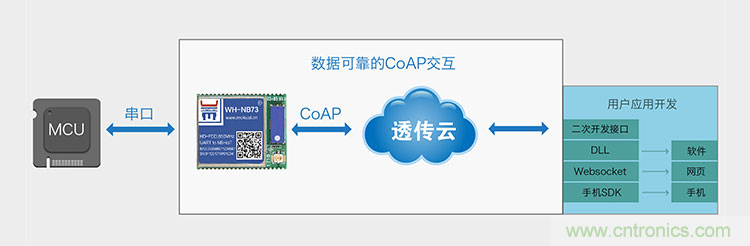 不僅優(yōu)化模塊內部的嵌入式軟件和AT指令的易用性,更是站在用戶角度考慮端到云的應用場景,提供透明傳輸UDP模式,提供CoAP通訊組件,嚴格的重傳機制,保障數(shù)據(jù)發(fā)出必答,不達報警,更有透傳云服務,讓用戶零編程即可使用NB-IoT搭建系統(tǒng)。