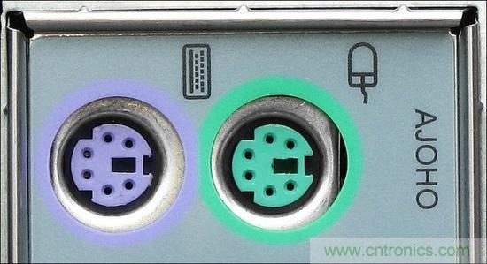 主板上的PS/2接口,紫色為鍵盤綠色為鼠標