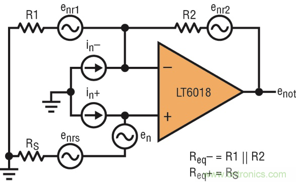 圖 2:運放電路噪聲源