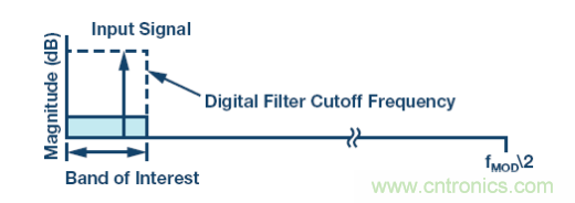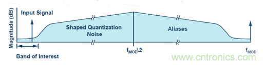 此外,Σ-Δ 架構可能集成數字濾波器,用來移除目標頻段外的量化噪聲,實現出色的動態范圍性能,如圖 3 所示。