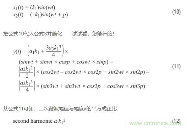 如果回過頭比較公式9和公式12,并且假設三角恒等式運用正確,那么可以得出如下結論:二次諧波受相位不平衡影響比受幅度不平衡影響更嚴重。原因如下:對于相位不平衡,二次諧波與k1的平方成正比;再看公式12,對于幅度不平衡,二次諧波與k1和k2的平方差成正比,或看公式9。由于k1和k2大致相等,因此這種差異通常很小,特別是如果將其與平方數進行比較!