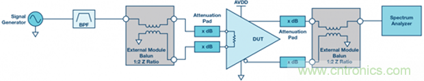 【導讀】在大多數實驗室環境中,信號發生器、頻譜分析儀等設備是單端儀器,用于測量高速差分放大器驅動器和轉換器的失真。因此,測量放大器驅動器的偶數階失真需要額外的器件,如巴倫和衰減器等,作為整體測試設置的一部分,以將單端測試儀器連接到放大器驅動器的差分輸入和輸出。