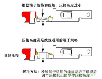 解決方法很簡(jiǎn)單, 增大剝線設(shè)備的剝線長(zhǎng)度至該端子的規(guī)定值。
