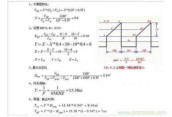 3、原邊電流的計算,其實是參考了《開關(guān)電源手冊》,見p156--p180,110W反激變壓器設(shè)計,原文中定義的原邊電流,IP2=3*IP1,即KRP=0.66。本文中用X、Y、Z來描述原邊電流,即固定X=10,Y為任意值,KRP也就為任意值。