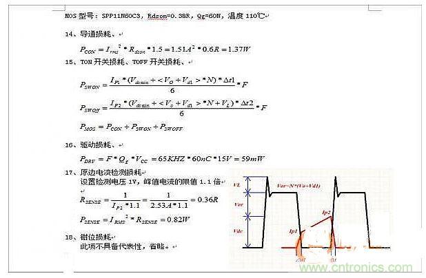 (關(guān)于開關(guān)損耗和導(dǎo)通損耗,上面的計算方法應(yīng)該是正確的,參考《精通開關(guān)電源》第5章。最有可能會出現(xiàn)的問題是,測量的準確性如何,因為這會導(dǎo)致計算值與實際值相差2--5倍。)