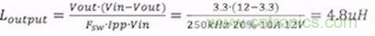 雖然輸出電感并不是影響輸出阻抗的主要因素,但使用合適的值也非常重要。電感值與紋波電流之間的關系是: