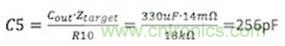 由于安裝好的R10值非常接近18kΩ,因此可以保持不變。C5的選擇原則是利用R3和C5形成的極點抵消輸出電容和ESR組成的零點。