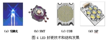 經過40多年的發展,LED封裝技術和結構先后經歷了四個階段,如圖4所示。