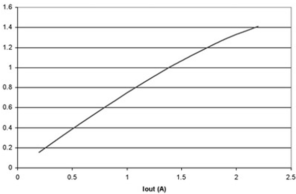 圖4 量化顯示了由于紋波電流造成的LED功耗的升高。與LED的散熱時間常量相比,由于紋波頻率較高,因此,高紋波電流(以及高峰值功耗)不會影響峰值結溫,它是由平均功耗確定的。LED的高壓降如一個電壓源,因此,電流波形對功耗沒有影響。不過,壓降有一個電阻分量,并且功耗由電阻乘以均方根 (RMS)電流的平方確定。