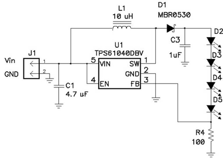 圖6 高度集成的升壓LED驅動器逐步升高輸入電壓