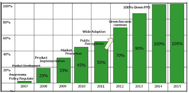 • 在2008年采用綠色環(huán)保技術或材料所生產的面板,預計在2012年將攀升至70%,并在2014年成為100%