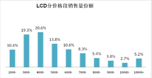 - 2000元到6000元之間液晶電視的零售量份額占到53.75%