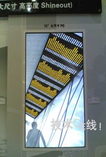 針對戶外廣告,兩家都大力推出了LCD應用方案,如戶外廣告牌、機場信息廣告牌等。其特點是高清晰度、高亮度和高對比度,在日光下也能正常顯示。不過其價格也高于一般的LCD顯示產品,據三星相關人員介紹,1塊70英寸的LCD戶外廣告牌,價格約在10萬元左右。隨著近幾年LCD和LED商業顯示應用的快速發展,LCD戶外廣告牌的應用領域越來越廣泛,已應用到了餐廳、機場、地鐵、學校和酒店等。