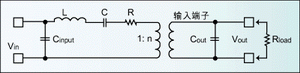要預測PZT在系統中的性能,有必要建立它的電路模型。圖1所示的電路模型通常用于描述長模式PZT在基本諧振頻率附近的性能。許多PZT制造商都基于在各種頻率和輸出負載下的測量結果提供該模型的元件值,具體元件值取決于PZT的構造。初級電極的多層結構和材料電介質常數形成了一個大的主級輸入電容(Cinput)。由于次級的單層結構和主級電極和次級電極之間的距離,輸出電容要小很多。