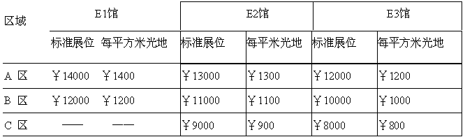 (A) 標(biāo)準(zhǔn)展位(每個標(biāo)準(zhǔn)展位為3米×3米=9平方米) 標(biāo)準(zhǔn)展位設(shè)施配備為:三面鋁合金圍板、滿鋪地毯、兩只射燈、兩把折椅,一張問詢桌和一個220V/500W的電源插座,楣板上書中英文公司名稱。單個拐角位置展位費(fèi)增加10%