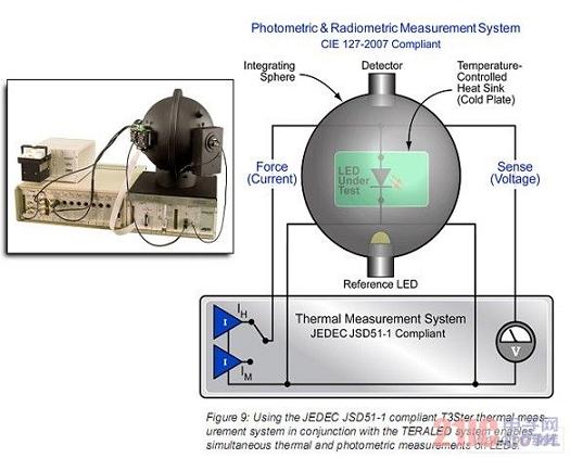 當TERALED以單機模式使用時,它可以完成光度測量。當結合T3Ster系統時可以進行熱和光度測量。圖9是TERALED和T3Ster系統一起使用的簡圖。