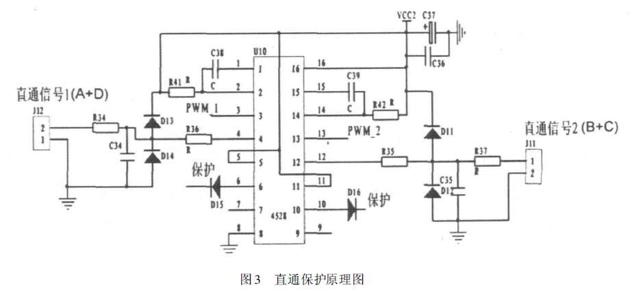 半橋和全橋是開關(guān)電源常用的拓撲結(jié)構(gòu),“直通”對其有很大的威脅,直通是同一橋臂兩只晶體管在同一時間內(nèi)同時導通的現(xiàn)象。 在換流期,開關(guān)電源易受干擾而造成直通,過大的直通電流會損壞用于逆變的電力電子器件。一旦出現(xiàn)直通現(xiàn)象,須盡快檢測到并立即關(guān)斷驅(qū)動,以避免開關(guān)器件的PN 結(jié)積累過大的熱量而燒壞。這里利用雙單穩(wěn)態(tài)集成觸發(fā)器CD4528設(shè)計了一種針對全橋和半橋的直通檢測、保護電路。