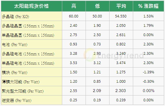 • 上游的多晶硅平均成交價來到$54.55/kg