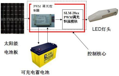 太陽能路燈的構(gòu)成十分簡單(圖1)。從圖1所示的框圖中可見,其中最核心的部件,就是PWM調(diào)光控制器和恒流模塊。