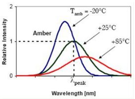 圖6. LED發(fā)光的峰值波長隨環(huán)境溫度而變化