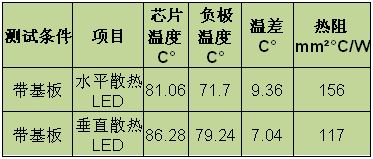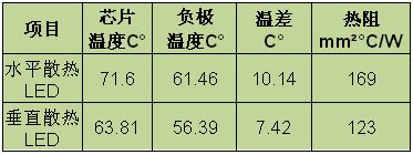 表4.3014LED(25mA)與3528LED(20mA)的熱模擬對比