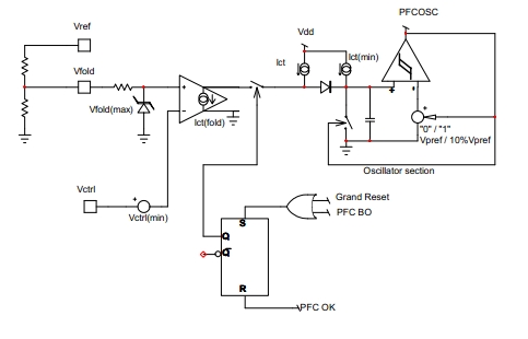 在下列情況時(shí),VLBO可下拉至2V(VLBO(PD)):VLBO高于2V(高線路電壓時(shí)),以及VCTRL處于最大值的時(shí)間長(zhǎng)于4ms(tPFCflag);Vbulk低于額定輸出的95%時(shí)。PFCPowerBoost功能在啟動(dòng)時(shí)被禁止;最長(zhǎng)下拉持續(xù)時(shí)間的典型值為5ms(tLBO(PDlimit));在后續(xù)最少70ms時(shí)間(tLBO(PDblank))內(nèi),開(kāi)關(guān)保持在開(kāi)路狀態(tài)。