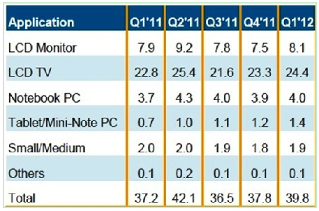 友達(dá)、新奇美、京東方、華映和瀚宇等廠商計(jì)劃于 2012年將更多資源投入到生產(chǎn)平板電腦面板上。盡管五代線和更低世代線主要以生產(chǎn)小筆電和平板電腦面板為主,但到 2012年第一季,預(yù)期有超過(guò)一半的小筆電和平板電腦面板將放在六代線和八代線上生產(chǎn)。
