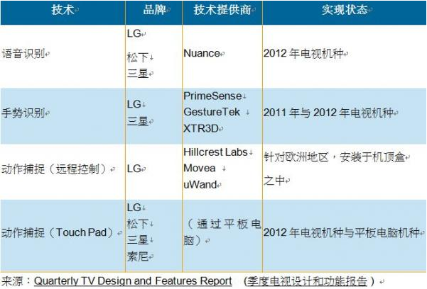 在2012年消費性電子展(CES)上,語音識別和手勢識別的原型機首次展出;但事實上手勢識別功能已經在市場上存在一段時間,只是未內建在電視機里,例如Xbox游戲機的微軟Kinect手勢識別等。