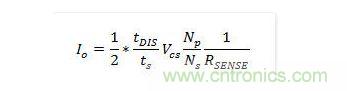 在二極管導通時間期間,輸出電壓與二極管正向壓降之和反射到輔助繞組為(VO+VF)*Na/Ns。通過在二極管導通時間結(jié)束時對繞組電壓進行采樣,可以獲得輸出電壓信息。輸出電流(Io)可使用MOSFET的峰值漏極電流(Ipk)以及電感電流的放電時間(tDIS)來估算,因為在穩(wěn)態(tài)下,輸出電流(Io)與二極管電流(ID)的平均值相同。輸出電流估算通過峰值檢測電路來確定漏極電流的峰值,并利用電感放電時間和開關(guān)周期(ts)來計算輸出電流。將此輸出信息與內(nèi)部精確參考電壓進行比較,產(chǎn)生誤差電壓(VCOMI),它可以確定MOSFET的占空比。使用Fairchild的創(chuàng)新TRUECURRENT技術(shù),可精確控制恒定輸出電流。