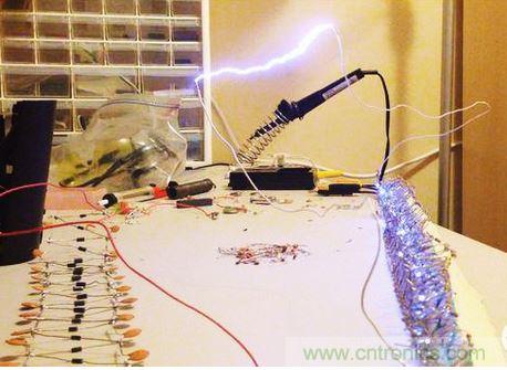 火花間隙可用彎曲的電阻和電容連接各級組成,不過你需要時刻關(guān)注這過程,通常用螺絲刀操作觸發(fā)第一個火花間隙更有效,這樣可使后續(xù)各級火花更完美。