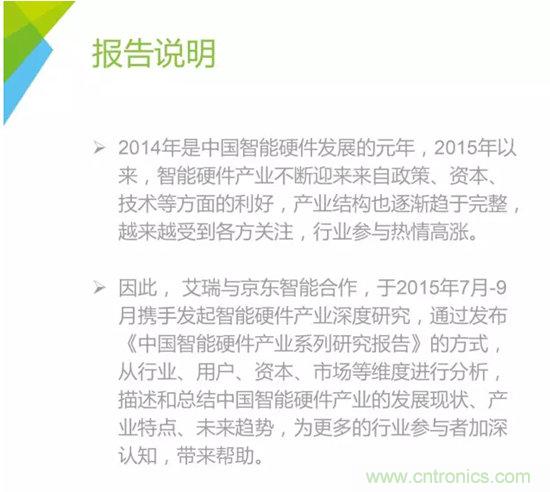 【導讀】日前,京東智能聯手艾瑞咨詢對智能硬件市場展開深度研究,并發布智能硬件產業系列研究報告,結合京東的大數據,從行業、用戶、資本、市場等維度,對智能硬件市場進行全面分析,并描述與總結目前中國智能硬件產業的發展現狀、產業特點、未來趨勢,為更多的行業參與者加深認知,帶來幫助。