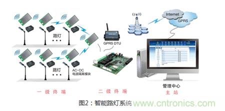 那么路燈是如何控制亮度協(xié)調(diào)工作的呢?下圖則是路燈控制系統(tǒng)的整體系統(tǒng)示意圖,在每個路燈節(jié)點上由一級終端設(shè)備將路況和環(huán)境信息通過ZigBee無線傳送給二級終端ZigBee集中器,通過它將信號轉(zhuǎn)為公網(wǎng)用的GPRS信號,最終傳遞給我們的管理中心,管理中心人員根據(jù)傳回來的信號,做出相應(yīng)的控制,調(diào)節(jié)每個節(jié)點的亮滅及亮度。
