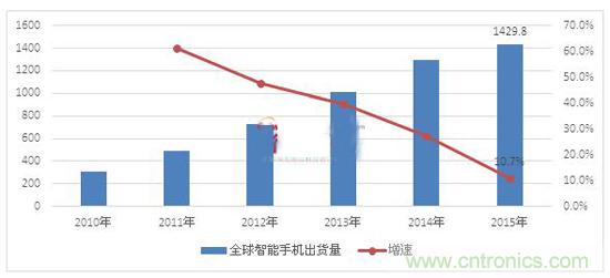 2015年全球智能手機出貨量保持兩位數增速,同比增長10.71%