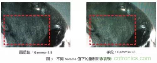 如果不采用提高LED順向電流的方式來(lái)掩蓋上述的缺點(diǎn),另一種手段就是調(diào)整小點(diǎn)間距LED顯示屏的gamma曲線,灰階的亮度對(duì)于正確的影像重制是非常重要,因?yàn)樵谝曈嵲粗辛炼劝舜蟛糠莓?huà)面數(shù)據(jù)。如圖3,右邊的圖像gamma值較小,代表中間色調(diào)的亮度太高,因此,整體畫(huà)面刷白又缺少深度,圖像上的細(xì)節(jié)損失不少,相較于左圖,右圖中的狗毛沒(méi)有那么有層次。